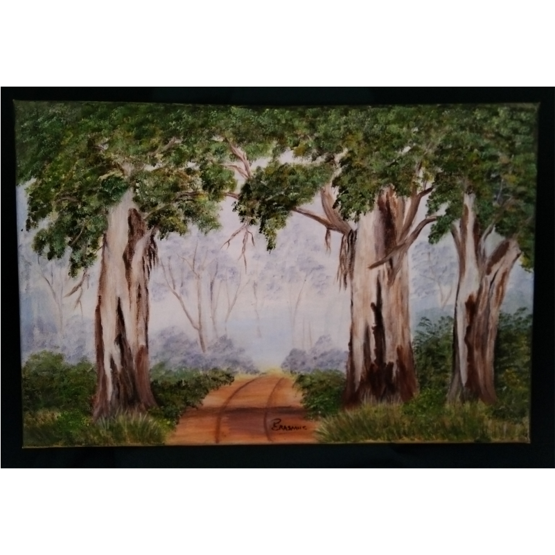 Bushveld-plantation-forest-road-misty-art-painting-400x600-Petro-Erasmus